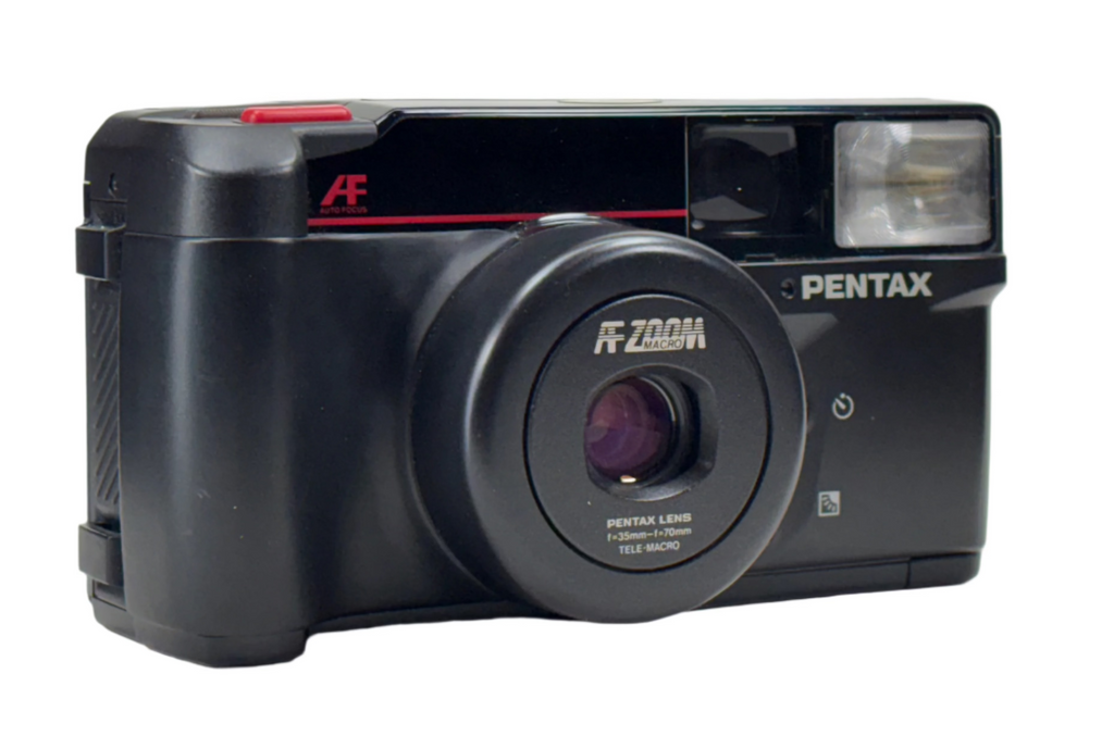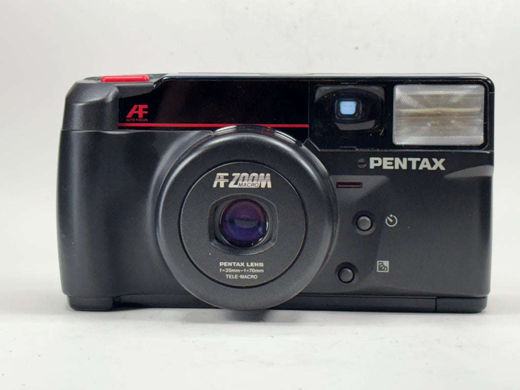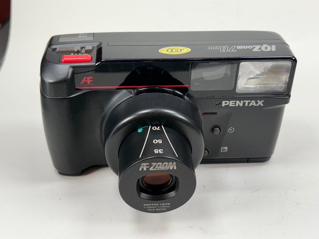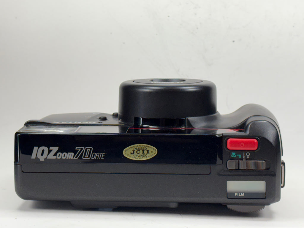 Pentax IQZoom 70 Date Point and shoo 35mm film camera. The 1980s pooint and shoot film camera features 35=70mm auto zoom and auto focus lens. This fully functioning point and shoot camera is simple and takes razor sharp images. It also has a macro feature for flowers and other close-up images. A solid camera that will provide years of quality images.